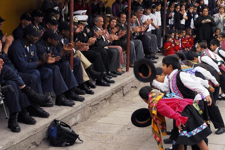 | Keywords: US Navy 090710-N-7092S-491 Students from Escuela General Basica Centenario take a bow to Sailors from guided-missile frigate USS Kauffman (FFG 59) after performing a native folk dance during a community relations project in Ari.jpg en ARICA Chile July 10 2009 Students from Escuela General Basica Centenario take a bow to Sailors from guided-missile frigate USS Kauffman FFG 59 after performing a native folk dance during a community relations project in Arica Chile Kauffman is on a four-month deployment to Latin America and the Caribbean as part of Southern Seas 2009 in support of US SOUTHCOM Partnership of the Americas Southern Seas is a deployment that focuses on conducting exercises military to military engagements and theater security cooperation engagements to enhance relationships with Partner Nations in the Region U S Navy photo by Mass Communication Specialist 2nd Class Brandon Shelander/Released 2009-07-10 090710-N-7092S-491 Navy http //www navy mil/view_image asp id 73763 U S Navy photo by Mass Communication Specialist 2nd Class Brandon Shelander PD-USGov-Military-Navy People of Arica Southern Seas 2009 |