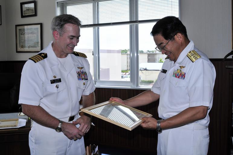 | Keywords: US Navy 090713-N-4031K-002 Capt. Eric Gardner, commanding officer of Naval Air Facility Atsugi, presents Rear Adm. Kazuo Takahashi with a certificate of appreciation.jpg en ATSUGI Japan July 13 2009 Capt Eric Gardner commanding officer of Naval Air Facility Atsugi presents Rear Adm Kazuo Takahashi commanding officer of Japan Maritime Self-Defense Force Fleet Air Wing Four with a certificate of appreciation during an award ceremony at base headquarters U S Navy photo by Mass Communication Specialist 2nd Class Steven Khor/Released 2009-07-13 090713-N-4031K-002 Navy http //www navy mil/view_image asp id 73739 U S Navy photo by Mass Communication Specialist 2nd Class Steven Khor Images from US Navy location Atsugi Japan Admirals of the JMSDF PD-USGov-Military-Navy |