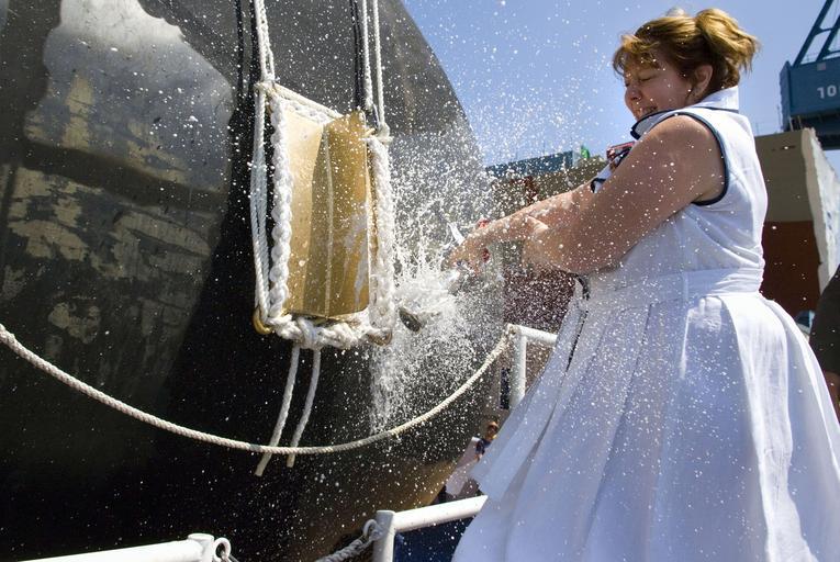 Keywords: US Navy 090801-N-5549O-186 Debra Dunham, mother of late Cpl. Jason Dunham and ship's sponsor breaks a bottle of champagne across the bow of the Arleigh Burke-class guided-missile destroyer Jason Dunham (DDG 109).jpg en BATH Maine Aug 1 2009 Debra Dunham mother of late Cpl Jason Dunham and ship's sponsor breaks a bottle of champagne across the bow of the Arleigh Burke-class guided-missile destroyer Jason Dunham DDG 109 during the ship's christening ceremony at General Dynamics Bath Iron Works in Bath Maine Dunham posthumously received the nation's highest military honor the Medal of Honor for his actions on April 14 2004 in Karabilah Iraq U S Navy photo by Mass Communication Specialist 2nd Class Kevin S O'Brien/Released 2009-08-01 090801-N-5549O-186 Navy http //www navy mil/view_image asp id 74728 U S Navy photo by Mass Communication Specialist 2nd Class Kevin S O'Brien PD-USGov-Military-Navy Images from US Navy location BATH Maine Ship christenings in the United States Navy USS Jason Dunham DDG-109 Champagne drink |