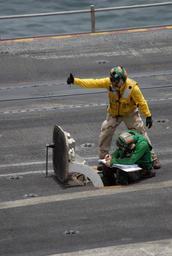 | Keywords: US Navy 090801-N-9132C-064 Aviation Boatswain's Mate (Equipment) 3rd Class James Deguise makes sure the catapult is ready to launch an aircraft off of the flight deck of the aircraft carrier USS Ronald Reagan (CVN 76).jpg en GULF OF OMAN Aug 1 2009 Aviation Boatswain's Mate Equipment 3rd Class James Deguise makes sure the catapult is ready to launch an aircraft off of the flight deck of the aircraft carrier USS Ronald Reagan CVN 76 while Lt Cmdr Steven Thomas the Shooter gives the go-a-head sign Ronald Reagan is deployed to the U S 5th Fleet area of responsibility U S Navy photo by Mass Communication Specialist Seaman Oliver Cole/Released 2009-08-01 090801-N-9132C-064 Navy http //www navy mil/view_image asp id 74931 U S Navy photo by Mass Communication Specialist Seaman Oliver Cole PD-USGov-Military-Navy Aviation Boatswain's Mates Catapults of USS Ronald Reagan CVN-76 |