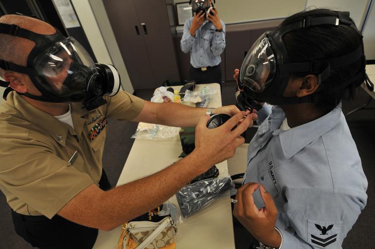 | Keywords: US Navy 090812-N-0807W-411 Hull Technician 1st Class Claude Lewis, chemical and biological Defense officer at Fleet Activities Sasebo, helps Quartermaster 2nd Class Alvera McKnight, from Covington, La., don her MCU-2P gas mask.jpg  en SASEBO Japan Aug 12 2009 Hull Technician 1st Class Claude Lewis chemical and biological Defense officer at Fleet Activities Sasebo helps Quartermaster 2nd Class Alvera McKnight from Covington La don her MCU-2P gas mask during a chemical biological radiological and nuclear defense training course The course is required training for all active duty personnel in Sasebo U S Navy photo by Mass Communication Specialist 2nd Class Joshua J Wahl/Released 2009-08-12 090812-N-0807W-411 Navy http //www navy mil/view_image asp id 75086 U S Navy photo by Mass Communication Specialist 2nd Class Joshua J Wahl PD-USGov-Military-Navy MCU-2/P Protective Mask United States Fleet Activities Sasebo |