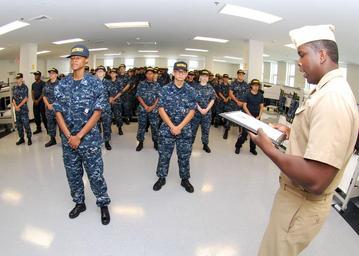 Keywords: US Navy 090817-N-7682E-003 Senior Chief Electronic Technician Mark Prince reads a letter to the recruits of Division 338, Ship ^ 9, USS John F. Kennedy at Recruit Training Command Great Lakes.jpg en Great Lakes Ill Aug 17 2009 Senior Chief Electronic Technician Mark Prince reads a letter to the recruits of Division 338 Ship 9 USS John F Kennedy at Recruit Training Command Great Lakes The letter written by Naval Station Mayport Commanding Officer Capt Aaron Bowman congratulated the recruits on the decision to join the Navy Command representatives from Naval Station Mayport visited RTC Great Lakes Aug 16-17 to take part in the division's official commissioning ceremony as the command sponsor U S Navy photo by Mass Communication Specialist 1st Class Heather Ewton/Released 2009-08-17 090817-N-7682E-003 Navy http //www navy mil/view_image asp id 75660 U S Navy photo by Mass Communication Specialist 1st Class Heather Ewton PD-USGov-Military-Navy Recruit Training Command Great Lakes Illinois |
