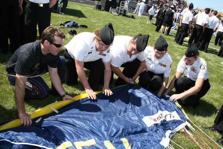 | Keywords: US Navy 090902-N-5366K-037 hief Special Warfare Operator (SEAL) Justin Gauny shows Navy Junior ROTC members how to pack his parachute.jpg  en COLUMBUS Ohio Sept 2 2009 Chief Special Warfare Operator SEAL Justin Gauny assigned to the U S Navy Parachute Team the Leap Frogs shows Navy Junior ROTC members how to pack his parachute after jumping from a Georgia Air National Guard C-130 aircraft 6 500 feet above Franklin Heights High School The Team jumped onto the school grounds to help kick off Central Ohio Navy Week one of 21 Navy Weeks planned across the country Navy Weeks are designed to show Americans the investment they have made in their Navy and increase awareness in cities that do not have a significant Navy presence U S Navy photo by Mass Communication Specialist 2nd Class Michelle Kapica/Released 2009-09-02 090902-N-5366K-037 Navy http //www navy mil/view_image asp id 75855 U S Navy photo by Mass Communication Specialist 2nd Class Michelle Kapica PD-USGov-Military-Navy Images from US Navy location COLUMBUS Ohio United States Navy Parachute Team |