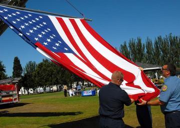 | Keywords: US Navy 090912-N-9860Y-008 Members of Navy Region Northwest Fire and Emergency Services raise the national ensign.jpg en OAK HARBOR Wash Sept 12 2009 Members of Navy Region Northwest Fire and Emergency Services raise the national ensign on the back of a fire truck at the opening of the Oak Harbor Military Appreciation Picnic This marks the 7th year the event has been held to honor the men and women who serve in our nation's uniformed services U S Navy photo by Mass Communication Specialist 2nd Class Tucker M Yates/Released 2009-09-12 090912-N-9860Y-008 Navy http //www navy mil/view_image asp id 76227 U S Navy photo by Mass Communication Specialist 2nd Class Tucker M Yates PD-USGov-Military-Navy Images from US Navy location OAK HARBOR Wash |