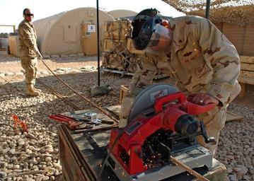 Keywords: US Navy 090915-N-4440L-055 Builder 2nd Class Justin Pines and Construction Mechanic 2nd Class Charles Barrow cut steel rebar for a construction project.jpg en HELMAND PROVINCE Afghanistan Sept 15 2009 Builder 2nd Class Justin Pines and Construction Mechanic 2nd Class Charles Barrow both assigned to Naval Mobile Construction Battalion NMCB 74 cut steel rebar for a construction project NMCB-74 is deployed to Afghanistan supporting the NATO International Security Assistance Force and U S Forces-Afghanistan U S Navy photo by Mass Communication Specialist 2nd Class Michael Lindsey/Released 2009-09-15 090915-N-4440L-055 Navy http //www navy mil/view_image asp id 77109 U S Navy photo by Mass Communication Specialist 2nd Class Michael Lindsey PD-USGov-Military-Navy Helmand Province in the War in Afghanistan 2001-present Builder United States Navy Construction Mechanic United States Navy Rebar Miter saws |