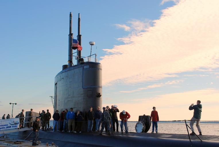 Keywords: US Navy 091025-N-8750E-072 Guests prepare to tour the Los Angeles-class attack submarine USS Annapolis (SSN 760).jpg en ANNAPOLIS Oct 25 2009 Guests prepare to tour the Los Angeles-class attack submarine USS Annapolis SSN 760 Annapolis was anchored in the Chesapeake Bay near the U S Naval Academy in Annapolis Md during the school's homecoming weekend U S Navy photo by Lt Patrick Evans/Released 2009-10-25 091025-N-8750E-072 Navy http //www navy mil/view_image asp id 77805 U S Navy photo by Lt Patrick Evans PD-USGov-Military-Navy United States Naval Academy USS Annapolis SSN-760 Submarine sails |