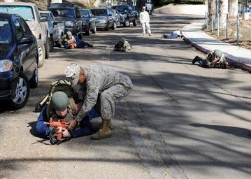 | Keywords: US Navy 091030-N-7032B-031 Hospital Corpsman 2nd Class Allan Antonio, front right, instructs Hospitalman Apprentice Christopher Gatpandan on the proper technique of 360 degree security during an in-coming drill at Naval Medical.jpg en SAN DIEGO Oct 30 2009 Hospital Corpsman 2nd Class Allan Antonio front right instructs Hospitalman Apprentice Christopher Gatpandan on the proper technique of 360 degree security during an in-coming drill at Naval Medical Center San Diego Ground combat drills prepare Sailors for situations they may encounter while deployed as individual augmentees U S Navy photo by Mass Communication Specialist 2nd Class Chad A Bascom/Released 2009-10-30 091030-N-7032B-031 Navy http //www navy mil/view_image asp id 78170 U S Navy photo by Mass Communication Specialist 2nd Class Chad A Bascom PD-USGov-Military-Navy 2009 in California Naval Medical Center San Diego |