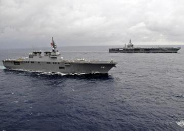 | Keywords: US Navy 091117-N-1644H-087 The Japan Maritime Self-Defense Force helicopter destroyer JS Hyuga (DDH 181) is underway alongside the aircraft carrier USS George Washington (CVN 73).jpg en PACIFIC OCEAN Nov 17 2009 The Japan Maritime Self-Defense Force helicopter destroyer JS Hyuga DDH 181 is underway alongside the aircraft carrier USS George Washington CVN 73 George Washington the Navy's only permanently forward-deployed aircraft carrier is participating in Annual Exercise ANNUALEX 21G the largest annual bilateral exercise with the U S Navy and the Japan Maritime Self-Defense Force U S Navy photo by Mass Communication Specialist 1st Class John M Hageman/Released 2009-11-17 091117-N-1644H-087 Navy http //www navy mil/view_image asp id 78600 U S Navy photo by Mass Communication Specialist 1st Class John M Hageman PD-USGov-Military-Navy Aboard USS George Washington CVN-73 JS Hyƫga DDH-181 |