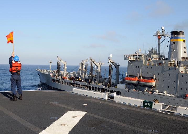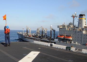 | Keywords: US Navy 091119-N-3729D-019 A Sailor aboard USS Peleliu (LHA 5) waves the Romeo flag.jpg  en PACIFIC OCEAN Nov 19 2009 A Sailor from deck department aboard the amphibious assault ship USS Peleliu LHA 5 waves the Romeo flag to signal to the Military Sealift Command fleet replenishment oiler USNS Guadalupe T-AO 200 Peleliu is approaching alongside to take on fuel during an underway replenishment Peleliu is underway off the coast of San Diego conducting engineering certifications U S Navy photo by Mass Communication Specialist 3rd Class Andrew J Dunlap/Released 2009-11-19 091119-N-3729D-019 Navy http //www navy mil/view_image asp id 78765 U S Navy photo by Mass Communication Specialist 3rd Class Andrew J Dunlap PD-USGov-Military-Navy Aboard USS Peleliu LHA-5 USNS Guadalupe T-AO-200 International Code of Signals |