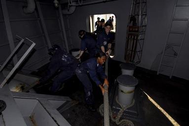 Keywords: US Navy 091202-N-2475A-046 Sailors heave mooring lines on the fantail of USS John C. Stennis (CVN 74).jpg en BREMERTON Wash Dec 02 2009 Sailors heave mooring lines on the fantail of the Nimitz-class aircraft carrier USS John C Stennis CVN 74 as the ship gets underway John C Stennis is transiting to Southern California to conduct carrier qualifications for fleet replacement squadron pilots U S Navy photo by Mass Communication Specialist 3rd Class Kenneth Abbate/Released 2009-12-02 091202-N-2475A-046 Navy http //www navy mil/view_image asp id 79010 U S Navy photo by Mass Communication Specialist 3rd Class Kenneth Abbate PD-USGov-Military-Navy Aboard USS John C Stennis CVN-74 |