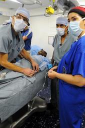 | Keywords: US Navy 100118-N-8878B-100 Surgeons perform surgery on a 12-year-old Haitian girl with a severe head injury aboard the Nimitz-class aircraft carrier USS Carl Vinson (CVN 70).jpg en PORT-AU-PRINCE Haiti Jan 18 2010 Cmdr Jerry Berman left a Navy surgeon Dr Henri R Ford Los Angles Pediatric Hospital Surgeon-in-Chief originally from Haiti Dr Sanjay Gupta a CNN medical correspondent and practicing neurosurgeon and Lt Cmdr Kathryn Berndt a Navy surgeon prepare a 12-year-old Haitian girl with a severe head injury for surgery aboard the Nimitz-class aircraft carrier USS Carl Vinson CVN 70 Sugeons removed a piece of concrete from the child's brain caused by the earthquake in Haiti Carl Vinson and Carrier Air Wing CVW 17 are conducting humanitarian and disaster relief operations as part of Operation Unified Response after a 7 0 magnitude earthquake caused severe damage near Port-au-Prince on Jan 12 2010 U S Navy photo by Mass Communication Specialist 2nd Class Michael C Barton/Released 2010-01-18 100118-N-8878B-100 Navy http //www navy mil/view_image asp id 80111 U S Navy photo by Mass Communication Specialist 2nd Class Michael C Barton PD-USGov-Military-Navy Aboard USS Carl Vinson CVN-70 12-year-old human females Female black hair Different races of people together Women of Haiti Sanjay Gupta |