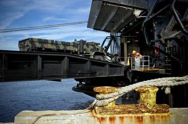 Keywords: US Navy 100118-N-1522S-008 The Military Sealift Command maritime prepositioning ship USNS 1st LT Jack Lummus (T-AK-3011) receives cargo from the U.S. Agency for International Development (USAID) and the U.S. Marine Corps at Blo.jpg en JACKSONVILLE Fla Jan 18 2010 The Military Sealift Command maritime prepositioning ship USNS 1st LT Jack Lummus T-AK-3011 receives cargo from the U S Agency for International Development USAID and the U S Marine Corps at Blount Island Command USAID provided more than 120 pallets of relief supplies and 400 bottles of propane The Marine Corps cargo included vehicles and heavy equipment to support the distribution of supplies water production water distribution and fuel distribution The Marines also provided limited earth-moving equipment electrical-producing equipment limited lumber building materials and medical supplies The ship and supplies are bound for Haiti as part of Operation Unified Response following a 7 0 magnitude earthquake near Port-au-Prince on Jan 12 2010 U S Navy photo by Mass Communication Specialist 1st Class Leah Stiles/Released 2010-01-18 100118-N-1522S-008 Navy http //www navy mil/view_image asp id 80217 U S Navy photo by Mass Communication Specialist 1st Class Leah Stiles PD-USGov-Military-Navy Images from US Navy location Jacksonville Florida USNS 1st Lt Jack Lummus T-AK-3011