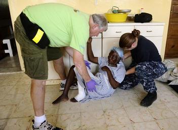 | Keywords: US Navy 100125-N-5345W-081 Hospital Corpsman 3rd Class Jennifer Atkinson, assigned to the amphibious dock landing ship USS Fort McHenry (LSD 43),.jpg  en GRAND GOAVE Haiti Jan 25 2010 Hospital Corpsman 3rd Class Jennifer Atkinson assigned to the amphibious dock landing ship USS Fort McHenry LSD 43 helps Doug Pogue an emergency medical technician with Lifeline Christian Ministries transport an injured Haitian woman to a medical holding and recovery area after she received primary care at the Ministry's mission clinic in Grand Goave Haiti Fort McHenry along with the amphibious dock landing ships USS Gunston Hall LSD 44 and USS Carter Hall LSD 50 and the multi-purpose amphibious assault ship USS Bataan LHD 5 are participating in Operation Unified Response as the Bataan Amphibious Relief Mission by providing military support capabilities to civil authorities to help stabilize and improve the situation in Haiti in the wake of the 7 0 magnitude earthquake that hit the area on Jan 12 2010 U S Navy photo by Mass Communication Specialist 2nd Class Kristopher Wilson/Released 2010-01-25 100125-N-5345W-081 Navy http //www navy mil/view_image asp id 80779 U S Navy photo by Mass Communication Specialist 2nd Class Kristopher Wilson PD-USGov-Military-Navy Aboard USS Fort McHenry LSD-43 Hospital Corpsman Aboard USS Gunston Hall LSD-44  |