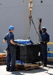 Keywords: US Navy 100210-N-8241M-002 Sailors load food and humanitarian supplies aboard the amphibious dock landing ship USS Carter Hall (LSD 50) at Guantanamo Bay, Cuba.jpg en GUANTANAMO BAY Cuba Feb 10 2010 Sailors load food and humanitarian supplies aboard the amphibious dock landing ship USS Carter Hall LSD 50 at Guantanamo Bay Cuba Guantanamo Bay is a logistical hub providing support for Operation Unified Response a humanitarian assistance mission following a 7 0 magnitude earthquake that devastated the region U S Navy photo by Chief Mass Communication Specialist Bill Mesta/Released 2010-02-10 100210-N-8241M-002 Navy http //www navy mil/view_image asp id 81756 U S Navy photo by Chief Mass Communication Specialist Bill Mesta PD-USGov-Military-Navy Aboard USS Carter Hall LSD-50 |