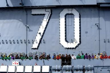 | Keywords: US Navy 100218-N-4275C-003 Flight deck personnel aboard SS Carl Vinson (CVN 70) observe USS Bunker Hill (CG 52) during a leapfrog positioning exercise.jpg  en ATLANTIC OCEAN Feb 18 2010 Flight deck personnel aboard the Nimitz-class aircraft carrier USS Carl Vinson CVN 70 observe the approaching guided-missile cruiser USS Bunker Hill CG 52 during a leapfrog positioning exercise Carl Vinson and Bunker Hill are deployed as part of Operation Southern Seas 2010 U S Navy photo by Mass Communication Specialist 2nd Class Joel Carlson/Released 2010-02-18 100218-N-4275C-003 Navy http //www navy mil/view_image asp id 82083 U S Navy photo by Mass Communication Specialist 2nd Class Joel Carlson PD-USGov-Military-Navy Aboard USS Carl Vinson CVN-70 70 number Aboard USS Bunker Hill CG-52 |
