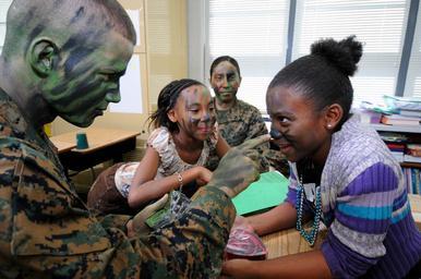 | Keywords: US Navy 100220-N-5328N-353 Pfc. Austin Natale, from Toledo, Wash., applies camouflage face paint on a student from Montclair Elementary School.jpg en PENSACOLA Fla Feb 20 2010 Pfc Austin Natale from Toledo Wash applies camouflage face paint on a student from Montclair Elementary School during the 50th session of Saturday Scholars This is the twenty-fifth year the Center for Information Dominance Detachment Corry Station has hosted the program making it the longest continuously-running Saturday Scholars program in the Navy U S Navy photo by Gary Nichols/Released 2010-02-20 100220-N-5328N-353 Navy http //www navy mil/view_image asp id 82281 U S Navy photo by Gary Nichols PD-USGov-Military-Navy Center for Information Dominance Corry Station Camouflage facepainting |