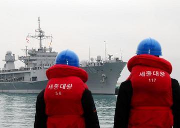| Keywords: US Navy 100305-N-9573A-009 Two Korean sailors watch the U.S. 7th Fleet command ship USS Blue Ridge (LCC 19) as it arrives in Busan, Republic of Korea.jpg en BUSAN Republic of Korea March 5 2010 Two Korean sailors watch the U S 7th Fleet command ship USS Blue Ridge LCC 19 as it arrives in Busan Republic of Korea Blue Ridge and U S 7th Fleet staff arrived in Busan for Exercise Key Resolve/Foal Eagle 2010 U S Navy photo by Mass Communication Specialist 1st Class Bobbie G Attaway/Released 2010-03-05 100305-N-9573A-009 Navy http //www navy mil/view_image asp id 82762 U S Navy photo by Mass Communication Specialist 1st Class Bobbie G Attaway PD-USGov-Military-Navy Aboard USS Blue Ridge LCC-19 |