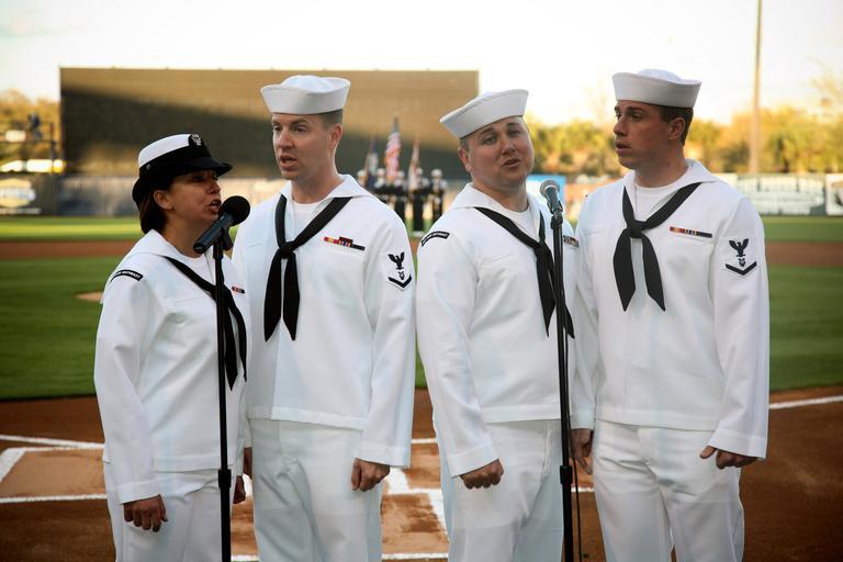 | Keywords: US Navy 100318-N-3271W-181 Members of the U.S. Navy Band, Pride, sing the national anthem before a pre-season game with the Tampa Bay Rays and New York Yankees.jpg en TAMPA Fla March 18 2010 Members of the U S Navy Band Southeast contemporary ensemble Pride sing the national anthem before a pre-season game with the Tampa Bay Rays and New York Yankees at Steinbrenner Field The band is taking part in events during Tampa Bay Navy Week the first of 20 Navy Weeks planned across America in 2010 Navy Weeks are designed to show Americans the investment they have made in their Navy and increase awareness in cities that do not have a significant Navy presence U S Navy photo by Senior Chief Mass Communication Specialist Gary Ward/Released 2010-03-18 100318-N-3271W-181 Navy http //www navy mil/view_image asp id 83345 U S Navy photo by Senior Chief Mass Communication Specialist Gary Ward PD-USGov-Military-Navy Images from US Navy location TAMPA Fla Tampa Bay Navy Week |