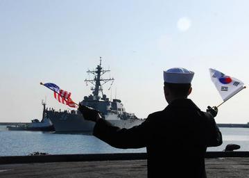 Keywords: US Navy 100319-N-9573A-005 A Republic of Korea sailor waves the American flag and Republic of Korea flag as the guided-missile destroyer USS John S. McCain (DDG 56) arrives in Donghae.jpg en DONGHAE Republic of Korea March 19 2010 A Republic of Korea sailor waves the American flag and Republic of Korea flag as the guided-missile destroyer USS John S McCain DDG 56 arrives in Donghae John S McCain is scheduled to train with the Republic of Korea navy as part of Foal Eagle 2010 John S McCain is one of seven ships assigned to Destroyer Squadron DESRON 15 and is forward-deployed to Yokosuka Japan U S Navy photo by Mass Communication Specialist 1st Class Bobbie G Attaway/Released 2010-03-19 100319-N-9573A-005 Navy http //www navy mil/view_image asp id 83419 U S Navy photo by Mass Communication Specialist 1st Class Bobbie G Attaway PD-USGov-Military-Navy Aboard USS John S McCain DDG-56 Republic of Korea Navy |