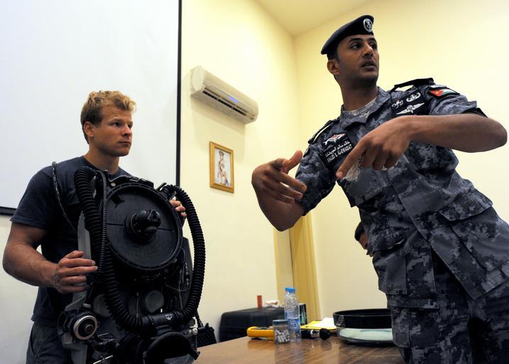 | Keywords: US Navy 100321-N-0553R-057 Explosive Ordnance Disposal Technician 2nd Class Rob Gangewer holds an Mk 16 underwater breathing apparatus.jpg  en RED SEA March 21 2010 Explosive Ordnance Disposal Technician 2nd Class Rob Gangewer a member of Explosive Ordnance Disposal Mobile Unit EODMU 11 deployed as a part of Combined Task Group 56 1 holds an Mk 16 underwater breathing apparatus as a Jordanian Frogman interprets classroom instruction EODMU-11 is conducting dive equipment familiarization and training with the Jordanian Frogmen group to continue growing joint military interrelationships U S Navy photo by Mass Communication Specialist 2nd Class Ja'lon A Rhinehart/Released 2010-03-21 100321-N-0553R-057 Navy http //www navy mil/view_image asp id 83764 U S Navy photo by Mass Communication Specialist 2nd Class Ja'lon A Rhinehart PD-USGov-Military-Navy Diving rebreathers Explosive Ordnance Disposal Technician United States Navy Underwater diver training Explosive Ordnance Disposal Mobile Unit 11 Mk 16 underwater breathing apparatus |