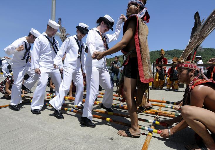 Keywords: US Navy 100403-N-7280V-484 Culinary Specialist Seaman Dulce Looney and fellow Sailors dance with traditional Malay dancers.jpg en KOTA KINABALU Malaysia April 3 2010 Culinary Specialist Seaman Dulce Looney and fellow Sailors assigned the U S 7th Fleet command ship USS Blue Ridge LCC 19 dance with traditional Malay dancers during a port visit to Kota Kinabalu Malaysia Blue Ridge pulled into Kota Kinabalu while underway for a scheduled spring deployment Blue Ridge is on a scheduled spring deployment U S Navy photo by Mass Communication Specialist 3rd Class Daniel Viramontes/Released 2010-04-03 100403-N-7280V-484 Navy http //www navy mil/view_image asp id 84005 U S Navy photo by Mass Communication Specialist 3rd Class Daniel Viramontes PD-USGov-Military-Navy Aboard USS Blue Ridge LCC-19 |