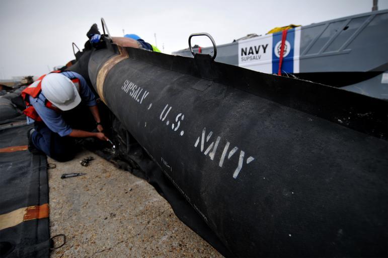 Keywords: US Navy 100430-N-7367K-004 An employee of the Supervisor of Salvage and Diving division of Naval Sea Systems Command works on an oil containment boom.jpg en GULFPORT Miss April 30 2010 An employee of the Supervisor of Salvage and Diving division of Naval Sea Systems Command works on an oil containment boom The Supervisor of Salvage and Diving division has sent 66 000 feet of inflatable oil booms skimming systems related support equipment and personnel to support clean-up efforts for the Deepwater Horizon oil spill Deepwater Horizon was an ultra-deepwater oil rig that sank April 22 causing a massive oil spill threatening the U S Gulf Coast U S Navy photo by Mass Communication Specialist 1st Class Demetrius Kennon/Released 2010-04-30 100430-N-7367K-004 Navy http //www navy mil/view_image asp id 84879 U S Navy photo by Mass Communication Specialist 1st Class Demetrius Kennon PD-USGov-Military-Navy Images from US Navy location Gulfport Miss Deepwater Horizon oil spill Oil containment booms |