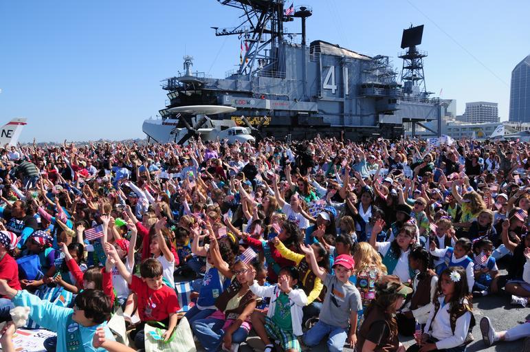| Keywords: US Navy 100501-O-9999P-008 Girl Scouts, parents and supporters crowd the flight deck of the USS Midway Museum to initiate this year's send-off celebration for Operation Thin Mint.jpg en SAN DIEGO May 1 2010 Girl Scouts parents and supporters crowd the flight deck of the USS Midway Museum to initiate this year's send-off celebration for Operation Thin Mint an annual Girl Scout cookie donation program for the military About 147 000 boxes of donated cookies are being transported to military members serving around the world Service members in the western Pacific Ocean will receive cookies with the help of volunteers from U S Fleet and Industrial Supply Center Yokosuka Japan U S Navy photo by Bill Perno/Released 2010-05-01 100501-O-9999P-008 Navy http //www navy mil/view_image asp id 85459 U S Navy photo by Bill Perno PD-USGov-Military-Navy USS Midway Museum - Flight deck Girl Scout cookies Scouting in California |