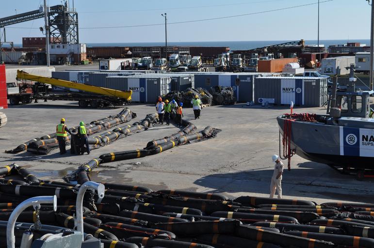 Keywords: US Navy 100505-N-6141B-001 Personnel contracted by the Supervisor of Salvage and Diving division of Naval Sea Systems Command prepare inflatable oil booms.jpg en GULFPORT Miss May 5 2010 Personnel contracted by the Supervisor of Salvage and Diving division of Naval Sea Systems Command prepare inflatable oil booms for rigging and deployment to support recovery efforts from the Deepwater Horizon oil spill Deepwater Horizon was an ultra-deepwater oil rig that sank April 22 causing a massive oil spill threatening the U S Gulf Coast U S Navy photo by Alan Baribeau/Released 2010-05-05 100505-N-6141B-001 Navy http //www navy mil/view_image asp id 85383 U S Navy photo by Alan Baribeau PD-USGov-Military-Navy Images from US Navy location Gulfport Miss Deepwater Horizon oil spill |