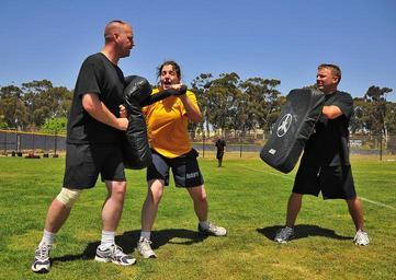 Keywords: US Navy 100507-N-4774B-156 Master-at-Arms Seaman Lindsey Bakke, center, rehearses defensive and offensive tactics with other Navy law enforcement personnel during the Navy Security Forces Training Course at Naval Air Station No.jpg en SAN DIEGO May 7 2010 Master-at-Arms Seaman Lindsey Bakke center rehearses defensive and offensive tactics with other Navy law enforcement personnel during the Navy Security Forces Training Course at Naval Air Station North Island The course is a pilot program being taught at Naval Air Station North Island The nine-week program teaches cooperation between civilian and military police forces U S Navy photo by Mass Communication Specialist 2nd Daniel Barker/Released 2010-05-07 100507-N-4774B-156 Navy http //www navy mil/view_image asp id 85287 U S Navy photo by Mass Communication Specialist 2nd Daniel Barker PD-USGov-Military-Navy Training at Naval Air Station North Island Master-at-arms |