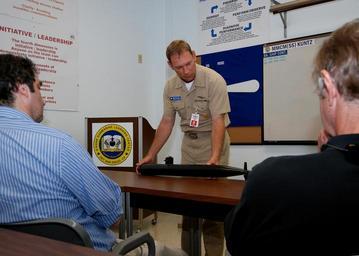 Keywords: US Navy 100513-N-5096L-161 Master Chief Machinist's Mate Burton Kuntz uses a scaled down model of a Los Angeles-class attack submarine to explain how the submarine maneuvers through water.jpg en SAN DIEGO May 13 2010 Master Chief Machinist's Mate Burton Kuntz uses a scaled down model of a Los Angeles-class attack submarine to explain how the submarine maneuvers through water to a group of educators during an educators orientation visit at Submarine Learning Center Detachment San Diego U S Navy photo by Mass Communication Specialist 2nd Class Eric Lopez/Released 2010-05-13 100513-N-5096L-161 Navy http //www navy mil/view_image asp id 85604 U S Navy photo by Mass Communication Specialist 2nd Class Eric Lopez PD-USGov-Military-Navy Submarine Learning Center Detachment San Diego |
