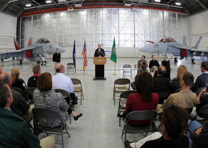 Keywords: US Navy 100524-N-9860Y-004 Ribbon cutting ceremony at Naval Air Station Whidbey Island.jpg en OAK HARBOR Wash May 24 2010 Rear Adm James Symonds commander of Navy Region Northwest speaks during a ribbon-cutting ceremony to commemorate the completion of Hangar 5's recapitalization at Naval Air Station NAS Whidbey Island The 55 8 million design-build project began in January 2008 The completed facility will house five EA-18G Growler squadrons the Electronic Attack Weapons School and Commander Electronic Attack Wing U S Pacific Fleet U S Navy photo by Mass Communication Specialist 2nd Class Tucker M Yates/Released 2010-05-24 100524-N-9860Y-004 Navy http //www navy mil/view_image asp id 85886 U S Navy photo by Mass Communication Specialist 2nd Class Tucker M Yates PD-USGov-Military-Navy Boeing EA-18G Growler Electronic Attack Squadron 129 United States Navy Electronic Attack Squadron 132 United States Navy Naval Air Station Whidbey Island