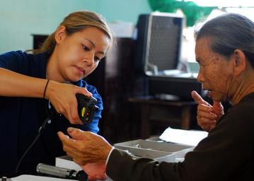 | Keywords: US Navy 100606-N-5207L-227 Lt. Thuong Le cans a Vietnamese patient's wristband during a Pacific Partnership 2010 medical civic action program.jpg  en QUY NHON Vietnam June 6 2010 Lt Thuong Le a doctor embarked aboard the Military Sealift Command hospital ship USNS Mercy T-AH 19 scans a Vietnamese patient's wristband during a Pacific Partnership 2010 medical civic action program at the Phuoc Hoa medical site Pacific Partnership is the fifth in a series of annual U S Pacific Fleet humanitarian and civic assistance endeavors to strengthen regional partnerships U S Navy photo by Mass Communication Specialist 1st Class Bill Larned/Released 2010-06-06 100606-N-5207L-227 Navy http //www navy mil/view_image asp id 86677 U S Navy photo by Mass Communication Specialist 1st Class Bill Larned PD-USGov-Military-Navy Aboard USNS Mercy T-AH-19  |