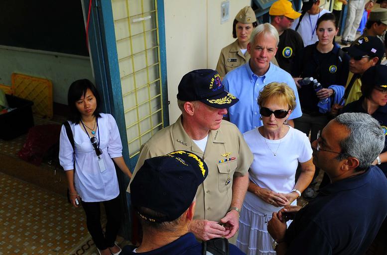 | Keywords: US Navy 100609-N-6410J-087 Adm. Robert F. Willard, commander of U.S. Pacific Command, speaks with Cmdr. Bharat Patel, officer in charge at the Hai Cang medical clinic during a medical community service project.jpg en QUY NHON Vietnam June 9 2010 Adm Robert F Willard commander of U S Pacific Command speaks with Cmdr Bharat Patel officer in charge at the Hai Cang medical clinic during a medical community service project The Military Sealift Command hospital ship USNS Mercy T-AH 19 is in Vietnam conducting Pacific Partnership 2010 the fifth in a series of annual U S Pacific Fleet humanitarian and civic assistance endeavors to strengthen regional partnerships U S Navy photo by Mass Communication Specialist 3rd Class Matthew Jackson/Released 2010-06-09 100609-N-6410J-087 Navy http //www navy mil/view_image asp id 86811 U S Navy photo by Mass Communication Specialist 3rd Class Matthew Jackson PD-USGov-Military-Navy Aboard USNS Mercy T-AH-19 Robert Willard in 2010 |