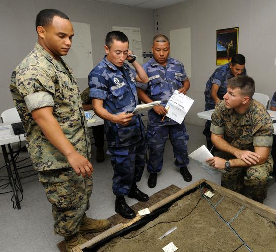 | Keywords: US Navy 100615-N-9643W-230 Sgts. Juan Martinez and Edan Valkner evaluate a 3D-model terrain with members of the Nicaraguan military during a subject matter expert exchange.jpg en CORINTO Nicaragua June 15 2010 Marine Corps Sgts Juan Martinez left and Edan Valkner both deployed aboard High Speed Vessel Swift HSV 2 evaluate a 3D-model terrain with members of the Nicaraguan military during a subject matter expert exchange Swift is deployed supporting Southern Partnership Station 2010 an annual deployment of U S military training teams to the U S Southern Command area of responsibility in the Caribbean and Latin America U S Navy photo by Mass Communication Specialist 1st Class Kim Williams/Released 2010-06-15 100615-N-9643W-230 Navy http //www navy mil/view_image asp id 87148 U S Navy photo by Mass Communication Specialist 1st Class Kim Williams PD-USGov-Military-Navy Corinto Nicaragua Images from US Navy location CORINTO Nicaragua Southern Partnership Station 2010 Military of Nicaragua |
