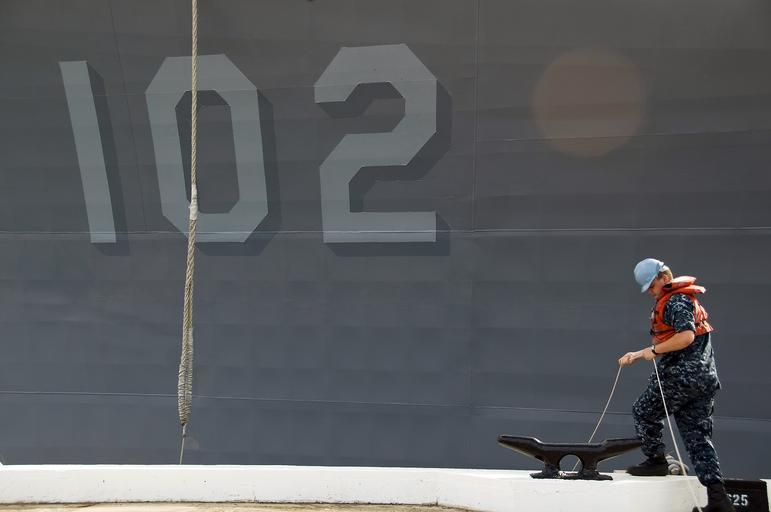 Keywords: US Navy 100624-N-6674H-004 A sailor helps moor in the Arleigh Burke-class guided-missile destroyer USS Sampson (DDG 102) as the ship arrives at Joint Base Pearl Harbor-Hickam.jpg en PEARL HARBOR June 24 2010 A sailor helps moor in the Arleigh Burke-class guided-missile destroyer USS Sampson DDG 102 as the ship arrives at Joint Base Pearl Harbor-Hickam for Rim of the Pacific RIMPAC 2010 RIMPAC is a biennial multinational exercise designed to strengthen regional partnerships and improve multi-national interoperability U S Navy photo by Mass Communication Specialist 2nd Class Paul D Honnick/Released 2010-06-24 100624-N-6674H-004 Navy http //www navy mil/view_image asp id 87669 U S Navy photo by Mass Communication Specialist 2nd Class Paul D Honnick PD-USGov-Military-Navy USS Sampson DDG-102 Ships with pennant number 102