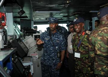 | Keywords: US Navy 100629-N-4236E-592 Distinguished visitors from U.S. Africa Command and Combined Joint Task Force, Horn of Africa learn about bridge operations during a tour of the Nimitz-class aircraft carrier USS Dwight D. Eisenhower.jpg en GULF OF ADEN June 29 2010 Distinguished visitors from U S Africa Command and Combined Joint Task Force Horn of Africa learn about bridge operations during a tour of the Nimitz-class aircraft carrier USS Dwight D Eisenhower CVN 69 The Eisenhower Carrier Strike Group is deployed as a part of an on-going rotation of forward-deployed forces to support maritime security operations in the U S 5th Fleet area of responsibility U S Navy photo by Mass Communication Specialist 3rd Class Chad R Erdmann/Released 2010-06-29 100629-N-4236E-592 Navy http //www navy mil/view_image asp id 87924 U S Navy photo by Mass Communication Specialist 3rd Class Chad R Erdmann PD-USGov-Military-Navy Aboard USS Dwight D Eisenhower CVN-69 United States Africa Command |