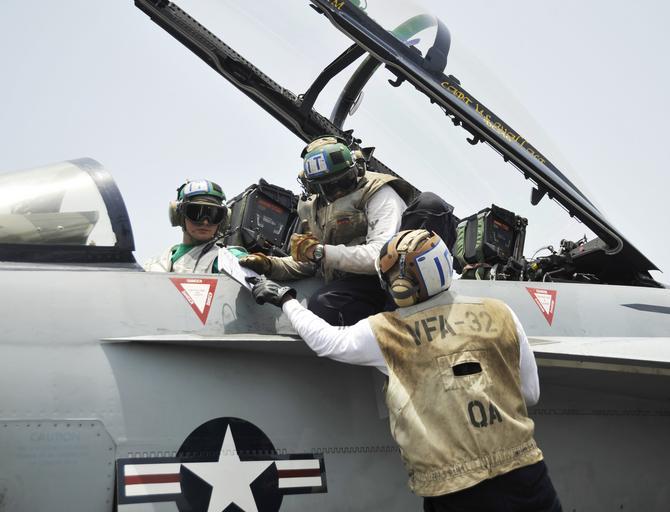 | Keywords: US Navy 100630-N-6003P-118 Aviation Electronics Technician 1st Class Jeffrey Caleb, right, and Aviation Electronics Technician 3rd Class Adam Chenevert conduct an ALE-47 Airborne Countermeasure Dispensing System inspection.jpg en U S 5TH FLEET AREA OF RESPONSIBILITY June 30 2010 Aviation Electronics Technician 1st Class Jeffrey Caleb right and Aviation Electronics Technician 3rd Class Adam Chenevert conduct an ALE-47 Airborne Countermeasure Dispensing System inspection during routine pre-flight checks on an F/A-18F Super Hornet assigned to the Swordsmen of Strike Fighter Squadron VFA 32 aboard the aircraft carrier USS Harry S Truman CVN 75 Harry S Truman is deployed as part of the Harry S Truman Carrier Strike Group supporting maritime security operations and theater security cooperation efforts U S Navy photo by Mass Communication Specialist 2nd Class Kilho Park/Released 2010-06-30 100630-N-6003P-118 Navy http //www navy mil/view_image asp id 87933 U S Navy photo by Mass Communication Specialist 2nd Class Kilho Park PD-USGov-Military-Navy Aboard USS Harry S Truman CVN-75 Pre-flight checks US Navy Strike Fighter Squadron 32 United States Navy |