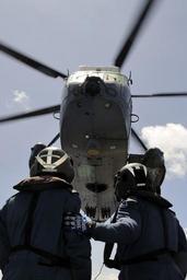 | Keywords: US Navy 100709-O-0000S-003 Cpl. Dale Sinclair, left, and Cpl. Alex Noel stand by to recover a CH-124 Sea King helicopter aboard the Canadian Navy estroyer (HMCS) Algonquin (DDG 283).jpg en VICTORIA Canada 9 July 2010 Cpl Dale Sinclair left and Cpl Alex Noel both from Bathurst New Brunswick stand by to recover a CH-124 Sea King helicopter aboard the Canadian Navy guided-missile destroyer HMCS Algonquin DDG 283 during Rim of the Pacific RIMPAC 2010 exercises RIMPAC is a biennial multinational exercise designed to strengthen regional partnerships and improve interoperability Canadian Forces photo by Cpl Charles A Stephen/Released 2010-07-09 100709-O-0000S-003 Navy http //www navy mil/view_image asp id 88655 U S Navy photo PD-USGov-Military-Navy Images from US Navy location VICTORIA British Columbia Sikorsky CH-124 Sea King HMCS Algonquin DDG 283 ship 1973 |