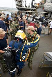 | Keywords: US Navy 100721-N-2831C-063 Sailors and a Mexican navy Dive team recover divers after a salvage recovery exercise aboard USNS Grasp(T-ARS 51).jpg  en VERACRUZ Mexico July 21 2010 Sailors assigned to company 2-6 of Mobile Diving and Salvage Unit MDSU 2 and a Mexican navy Dive team recover divers after a salvage recovery exercise aboard the Military Sealift Command rescue and salvage ship USNS Grasp T-ARS 51 MDSU-2 is participating in Navy Diver-Southern Partnership Station ND-SPS a multinational partnership engagement designed to increase interoperability and partner nation capacity through diving operations U S Navy photo by Chief Mass Communication Specialist David Collins/Released 2010-07-21 100721-N-2831C-063 Navy http //www navy mil/view_image asp id 89153 U S Navy photo by Chief Mass Communication Specialist David Collins PD-USGov-Military-Navy Aboard USNS Grasp T-ARS-51 |