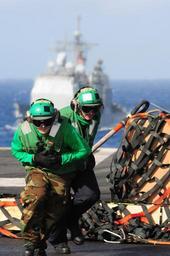 Keywords: US Navy 100721-N-3659B-298 Logistics Specialist 3rd Class Brian Becker and Logistics Specialist 3rd Class James Heckwine run to safety after connecting a cargo pendant to an MH-60S Sea Hawk helicopter.jpg en PACIFIC OCEAN July 21 2010 Logistics Specialist 3rd Class Brian Becker front from Salt Lake City and Logistics Specialist 3rd Class James Heckwine from Decatur Ill run to safety after connecting a cargo pendant to an MH-60S Sea Hawk helicopter assigned to the Eightballers of Helicopter Sea Combat Squadron HSC 8 during a vertical replenishment aboard the aircraft carrier USS Ronald Reagan CVN 76 Ronald Reagan is underway participating in Rim of the Pacific RIMPAC 2010 a biennial multinational exercise designed to strengthen regional partnerships and improve multinational interoperability U S Navy photo by Mass Communication Specialist 2nd Class Joseph M Buliavac/Released 2010-07-21 100721-N-3659B-298 Navy http //www navy mil/view_image asp id 89101 U S Navy photo by Mass Communication Specialist 2nd Class Joseph M Buliavac PD-USGov-Military-Navy Helicopters at USS Ronald Reagan CVN-76 MH-60S Seahawk Helicopter Sea Combat Squadron 8 United States Navy USS Ronald Reagan CVN-76 underway replenishment |