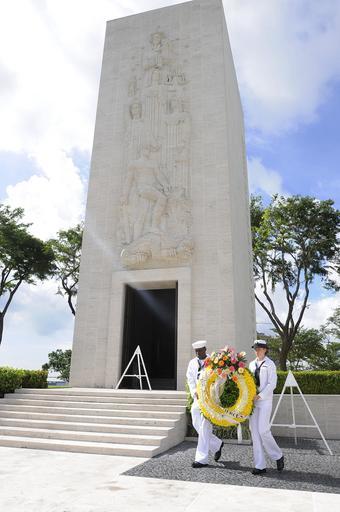Keywords: US Navy 100806-N-3005P-017 Sailors present a wreath during a remembrance ceremony at the Manila American Cemetery and Memorial.jpg en MANILA Philippines Aug 6 2010 Yeoman 2nd Class Marvin Craft left and Ship's Servicemen Seaman Krista Stelzner both assigned to the U S 7th Fleet command ship USS Blue Ridge LCC 19 present a wreath during a remembrance ceremony at the Manila American Cemetery and Memorial Blue Ridge is in Manila conducting humanitarian assistance projects and strengthening ties with the Filipino people U S Navy photo by Mass Communication Specialist 2nd Class Aaron Pineda/Released 2010-08-06 100806-N-3005P-017 Navy http //www navy mil/view_image asp id 89935 U S Navy photo by Mass Communication Specialist 2nd Class Aaron Pineda PD-USGov-Military-Navy Aboard USS Blue Ridge LCC-19