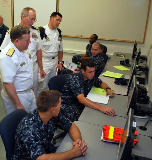 | Keywords: US Navy 100806-N-0933M-002 Vice Adm. Peter H. Daly along with Seaman Apprentices Daniel Wilson, Brandon Brammer and Gary Capers describe their training curriculum during a visit to Training Support Center Great Lakes.jpg en GREAT LAKES Ill Aug 6 2010 Vice Adm Peter H Daly deputy commander of U S Fleet Forces Command listens as Seaman Matthew Bickerstaff along with Seaman Apprentices Daniel Wilson Brandon Brammer and Gary Capers describe their training curriculum during a visit to Training Support Center TSC Great Lakes All the students attend the Gunner's Mate A School at the Center for Surface Combat Systems Unit CSCSU U S Navy photo by Matt Mogel/Released 2010-08-06 100806-N-0933M-002 Navy http //www navy mil/view_image asp id 90198 U S Navy photo by Matt Mogel PD-USGov-Military-Navy Naval Station Great Lakes |