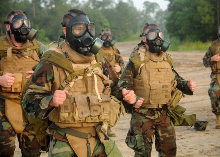 | Keywords: US Navy 100806-N-9564W-089 Seabees run in place in full mission oriented protective posture (MOPP) gear and gas masks during a battalion readiness exercise at Naval Construction Battalion Center, Gulfport.jpg  en GULFPORT Miss Aug 6 2010 Seabees assigned to Naval Mobile Construction Battalion NMCB 74 run in place in full gear and gas masks during a battalion readiness exercise at Naval Construction Battalion Center Gulfport The exercise included seven stations designed to build strength confidence and endurance in order to prepare the battalion for future missions and exercises in homeport and on deployment U S Navy photo by Mass Communication Specialist 1st Class Ryan G Wilber/Released 2010-08-06 100806-N-9564W-089 Navy http //www navy mil/view_image asp id 90424 U S Navy photo by Mass Communication Specialist 1st Class Ryan G Wilber PD-USGov-Military-Navy Naval Construction Battalion Center Gulfport Mission Oriented Protective Posture Males wearing gas masks M40 Field Protective Mask |