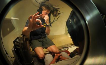Keywords: US Navy 100811-N-9769P-052 Navy Diver 2nd Class Matt Wilson gives the signal to safety observers that all divers are Okay during re-compression chamber training aboard USNS Grasp (T-ARS 51).jpg en PANAMA CITY Panama Aug 11 2010 Navy Diver 2nd Class Matt Wilson assigned to Mobile Diving and Salvage Unit MDSU 2 gives the signal to safety observers that all divers are Okay during re-compression chamber training aboard the Military Sealift Command rescue and salvage ship USNS Grasp T-ARS 51 MDSU-2 is participating in Navy Diver-Southern Partnership Station ND- SPS a multinational partnership engagement designed to increase interoperability and partner nation capacity through diving operations U S Navy photo by Mass Communication Specialist 1st Class Jayme Pastoric/Released 2010-08-11 100811-N-9769P-052 Navy http //www navy mil/view_image asp id 90194 U S Navy photo by Mass Communication Specialist 1st Class Jayme Pastoric PD-USGov-Military-Navy Aboard USNS Grasp T-ARS-51 United States Navy Divers O gesture with thumb and forefinger |