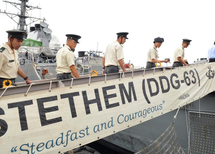 Keywords: US Navy 100812-N-8113T-002 apan Ground Self-Defense Force (JGSDF) soldiers board USS Stethem (DDG 63) for a cooperative work program shipboard tour.jpg en YOKOSUKA Japan Aug 12 2010 Japan Ground Self-Defense Force JGSDF soldiers board the Arleigh Burke-class guided-missile destroyer USS Stethem DDG 63 for a cooperative work program shipboard tour The work program is a partnership between the U S Army and the JGSDF that blends a group of JGSDF service members into various commands at Camp Zama at U S Army Garrison Japan to practice English and learn about U S military structure U S Navy photo by Mass Communication Specialist 1st Class N Ross Taylor/Released 2010-08-12 100812-N-8113T-002 Navy http //www navy mil/view_image asp id 90206 U S Navy photo by Mass Communication Specialist 1st Class N Ross Taylor PD-USGov-Military-Navy Aboard USS Stethem DDG-63 Gangways watercraft |