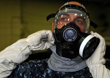 | Keywords: US Navy 100925-N-3374C-032 Yeoman Seaman Michael Barnes, assigned to the administration department of the aircraft carrier USS George H.W. Bush (CV.jpg en ATLANTIC OCEAN Sept 25 2010 Yeoman Seaman Michael Barnes assigned to the administration department of the aircraft carrier USS George H W Bush CVN 77 dons a MCU-2P gas mask during a chemical biological and radiological CBR drill in the ship's hangar bay This is the first time the crew of George H W Bush has trained for a CBR attack U S Navy photo by Mass Communication Specialist 3rd Class Tony Curtis/Released 2010-09-25 100925-N-3374C-032 Navy http //www navy mil/view_image asp id 92148 U S Navy photo by Mass Communication Specialist 3rd Class Tony Curtis PD-USGov-Military-Navy Aboard USS George H W Bush CVN-77 Males wearing gas masks MCU-2/P Protective Mask |