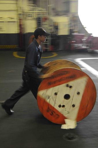 | Keywords: US Navy 101015-N-7605J-056 Boatswain's Mate 2nd Class Alexander Luna transports a spool during a cargo onload in the hangar bay of the aircraft car.jpg en SAN DIEGO Oct 15 2010 Boatswain's Mate 2nd Class Alexander Luna transports a spool during a cargo onload in the hangar bay of the aircraft carrier USS Ronald Reagan CVN 76 Ronald Reagan is conducting exercises to prepare for an upcoming deployment U S Navy photo by Mass Communication Specialist Seaman Benjamin C Jernigan/Released 2010-10-15 101015-N-7605J-056 Navy http //www navy mil/view_image asp id 92874 U S Navy photo by Mass Communication Specialist Seaman Benjamin C Jernigan PD-USGov-Military-Navy Hangar bays of USS Ronald Reagan CVN-76 |