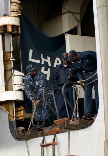 | Keywords: US Navy 101116-N-3852A-156 Sailors assigned to the amphibious assault ship USS Nassau (LHA 4) bring down a ladder while preparing to get underway.jpg en NORFOLK Nov 16 2010 Sailors assigned to the amphibious assault ship USS Nassau LHA 4 bring down a ladder while preparing to get underway U S Navy photo by Mass Communication Specialist 1st Class Rebekah Adler/Released 2010-11-16 101116-N-3852A-156 Navy http //www navy mil/view_image asp id 94267 U S Navy photo by Mass Communication Specialist 1st Class Rebekah Adler PD-USGov-Military-Navy Aboard USS Nassau LHA-4 |