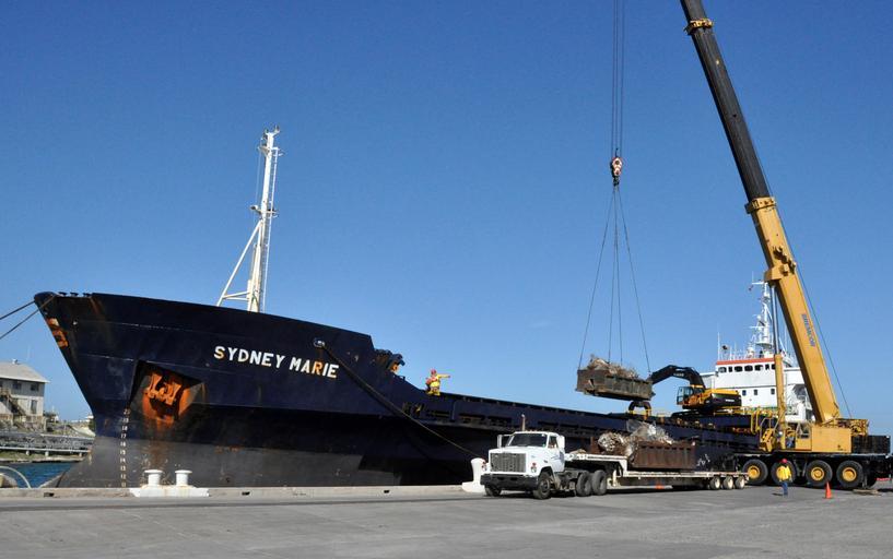 | Keywords: US Navy 101122-N-8241M-011 The cargo ship MV Sydney Marie takes on scrap metal at Naval Station Guantanamo Bay, Cuba.jpg en GUANTANAMO BAY Cuba Nov 22 2010 The cargo ship MV Sydney Marie takes on scrap metal at Naval Station Guantanamo Bay Cuba Approximately 18 thousand cubic tons of scrap metal was loaded onto the Sydney Marie The scrap metal was gathered as part of the naval station's recycling program U S Navy photo by Chief Mass Communication Specialist Bill Mesta/Released 2010-11-22 101122-N-8241M-011 Navy http //www navy mil/view_image asp id 94522 U S Navy photo by Chief Mass Communication Specialist Bill Mesta PD-USGov-Military-Navy Telescope cranes US Navy vessels at the Guantanamo Bay Naval Base ¢ Vehicle transport at the Guantanamo Bay Naval Base |