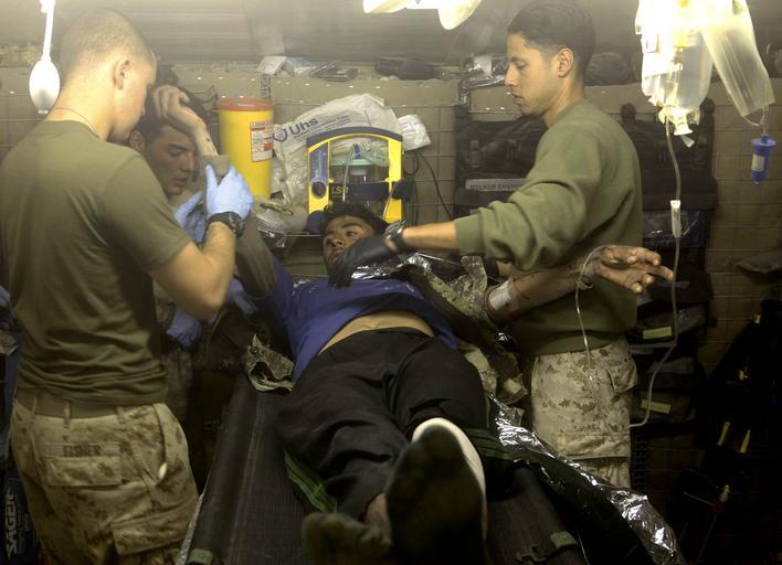 Keywords: US Navy 101206-M-7825S-062 Hospital Corpsmen render medical assistance to an Afghan National Army soldier at Forward Operating Base Jackson.jpg en SANGIN Afghanistan Dec 6 2010 Hospital Corpsmen assigned to 3rd Battalion 5th Marine Regiment and 1st Marine Logistics Group render medical assistance to an Afghan National Army soldier at Forward Operating Base Jackson The battalion is one of the combat elements of Regimental Combat Team 2 conducting counterinsurgency operations in partnership with the International Security Assistance Force U S Marine Corps photo by Sgt Artur Shvartsberg/Released 2010-12-06 101206-M-7825S-062 Navy http //www navy mil/view_image asp id 95467 U S Marine Corps photo by Sgt Artur Shvartsberg PD-USGov-Military-Navy Forward Operating Base Jackson Wounded soldiers Intravenous therapy |